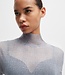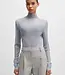 Un top féminin à col haut signé BOSS. Cette pièce à manches longues est fabriquée en tulle lé..