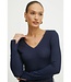 Un haut polyvalent à encolure en V, signé BOSS Womenswear. Ce modèle à manches longues est confectionné dans un jersey stretch brillant à structure côtelée.